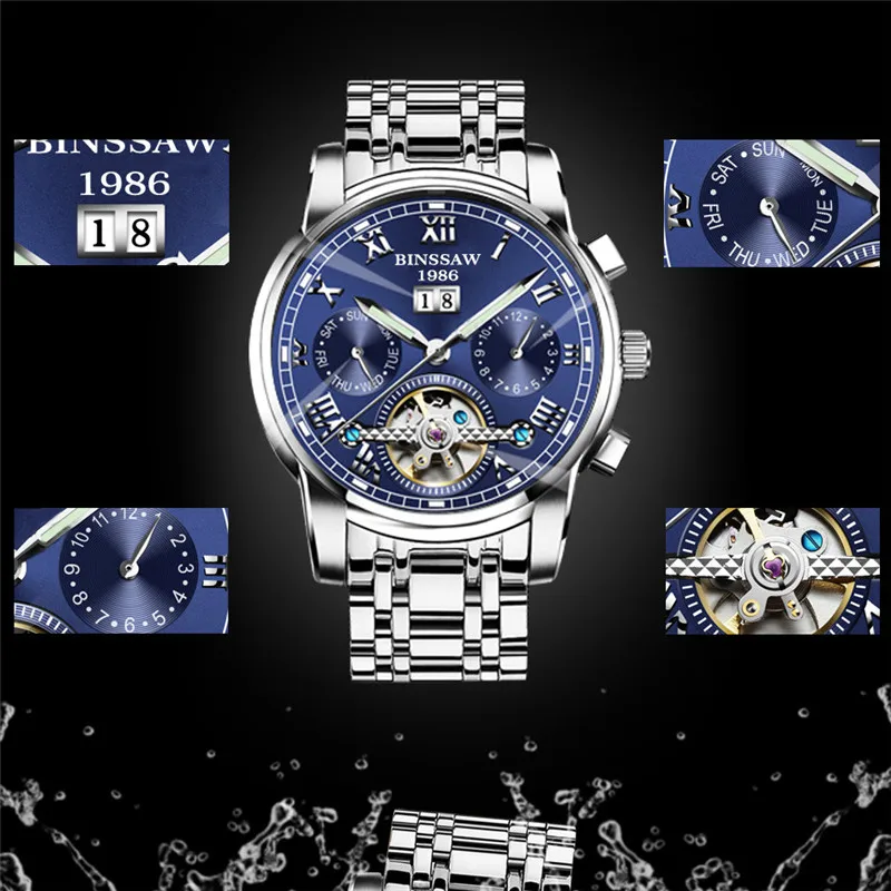 Отзывы о Автоматические механические часы BINSSAW Tourbillon для мужчин фирменные роскошные из