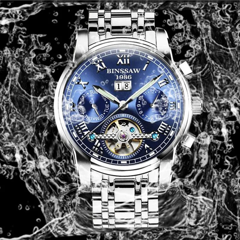 Автоматические механические часы BINSSAW Tourbillon для мужчин фирменные роскошные из - купить