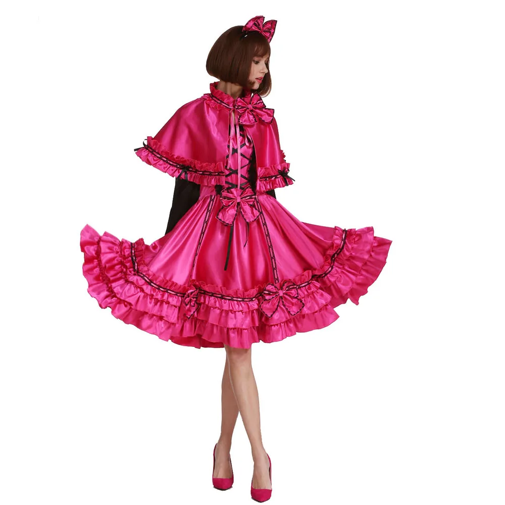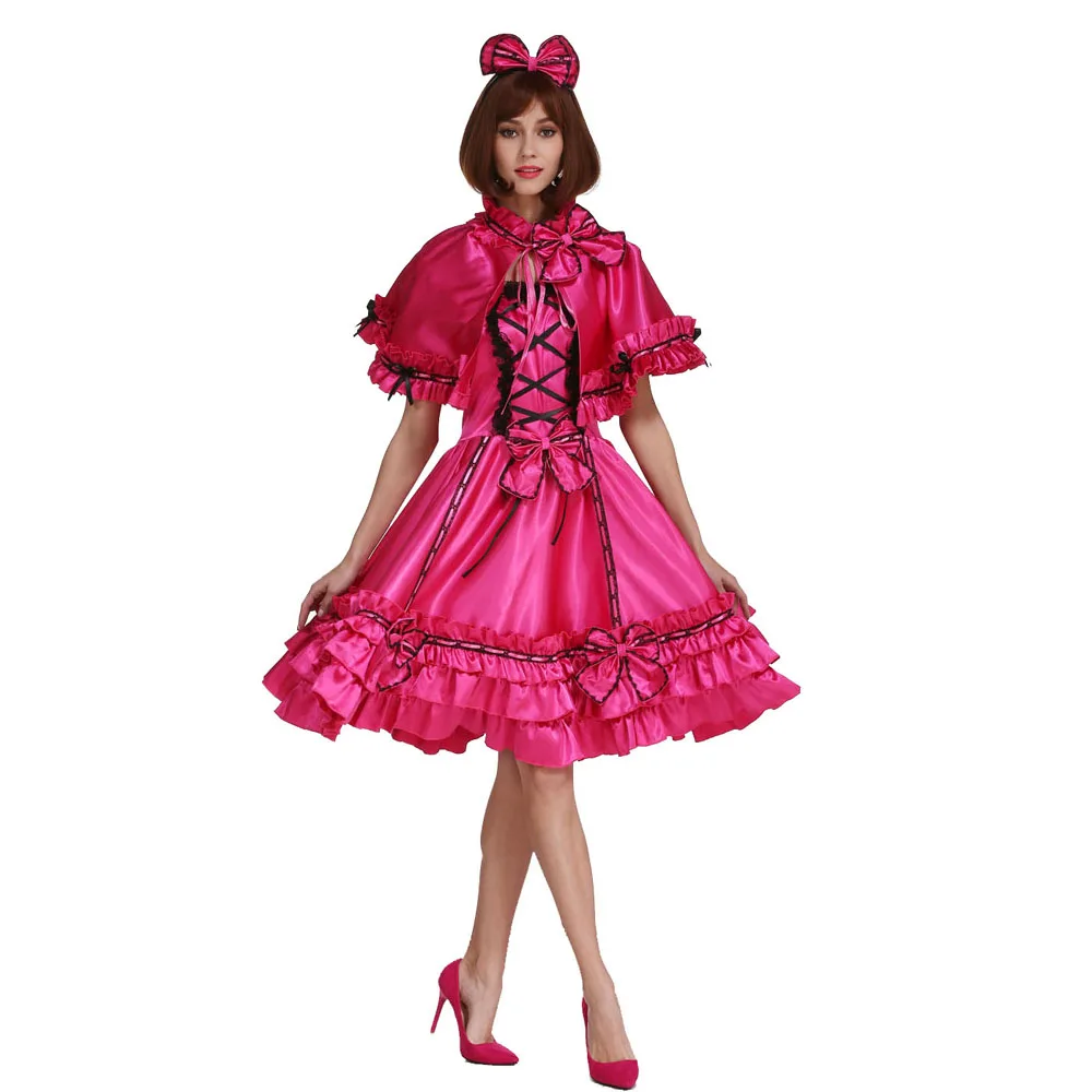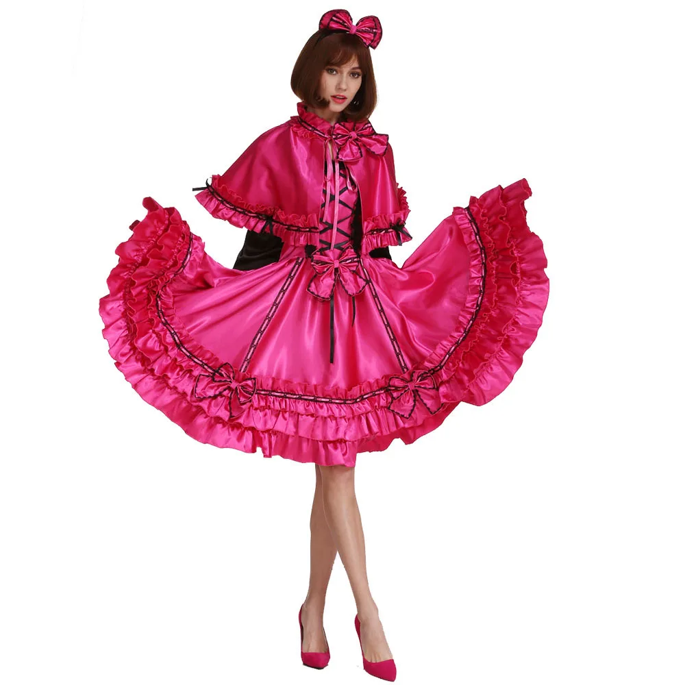Костюм для косплея из сатина в винтажном розово-красном стиле
