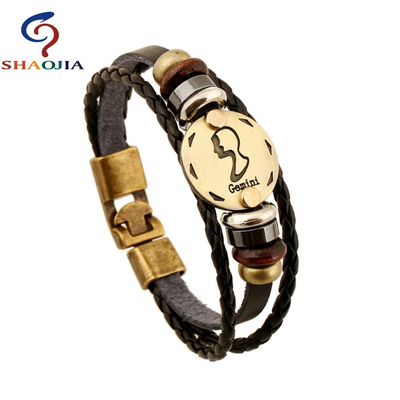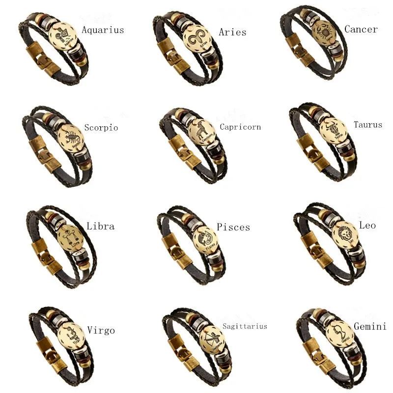 Мужские кожаные очаровательные браслеты 12 созвездий мужские повседневные - купить