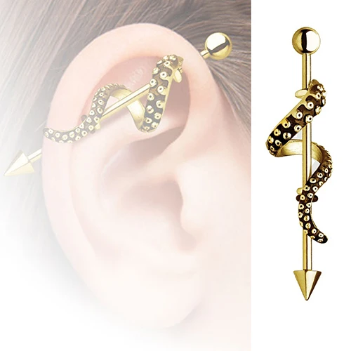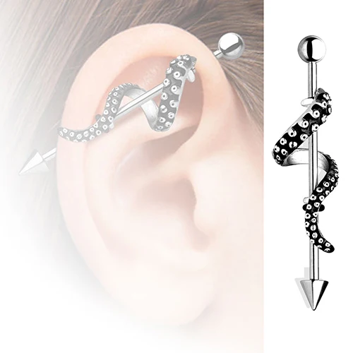 Купить 1Pc Men Women Arrow Punk Barbell Wrapped Octopus Tentacle Earring Body Piercing |