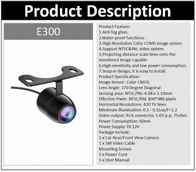 Характеристики камеры заднего вида автомобиля: