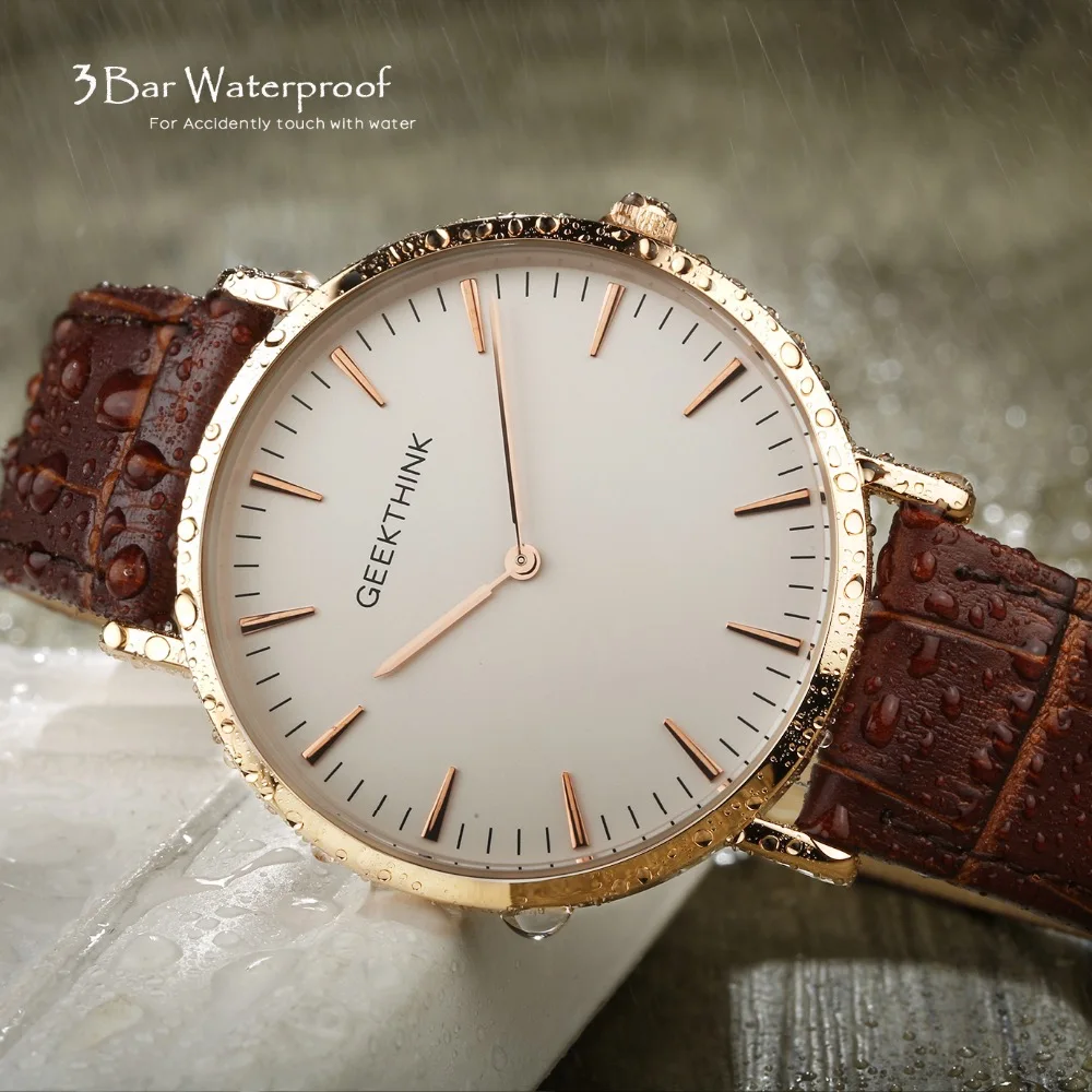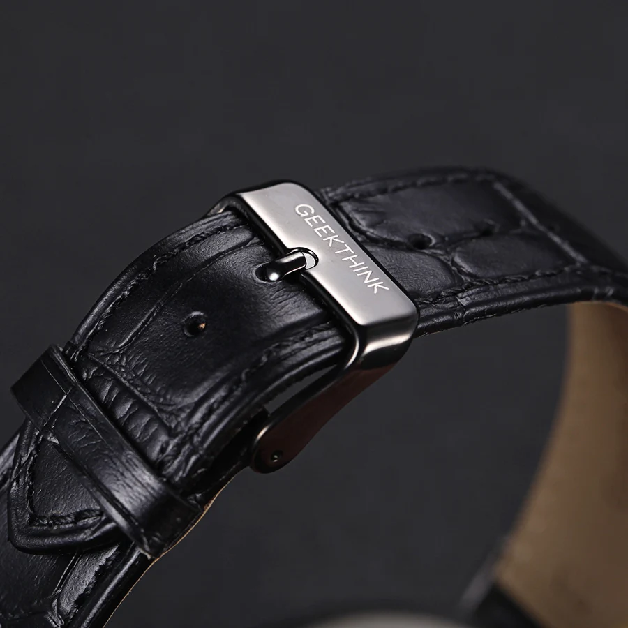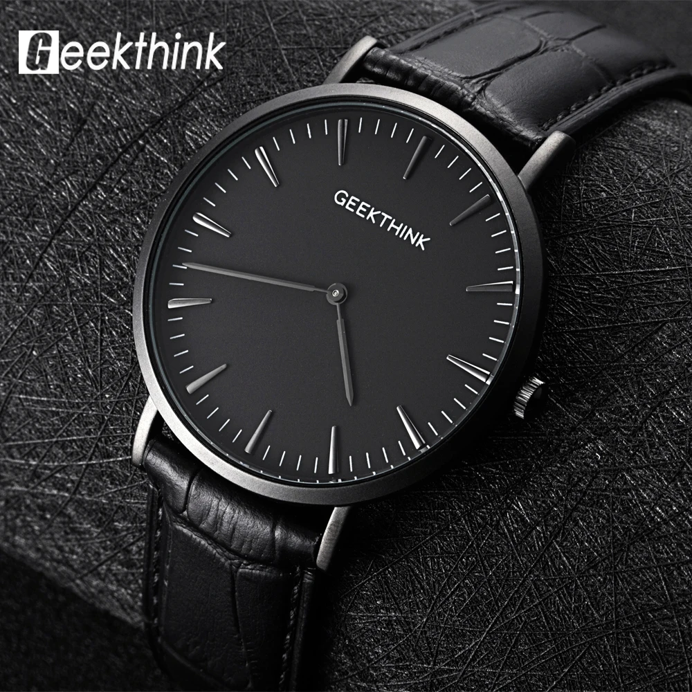 GEEKTHINK Топ бренд Роскошные Кварцевые часы мужские деловые повседневные Черные японские кварцевые часы из натуральной кожи ультра тонкие часы мужские новые