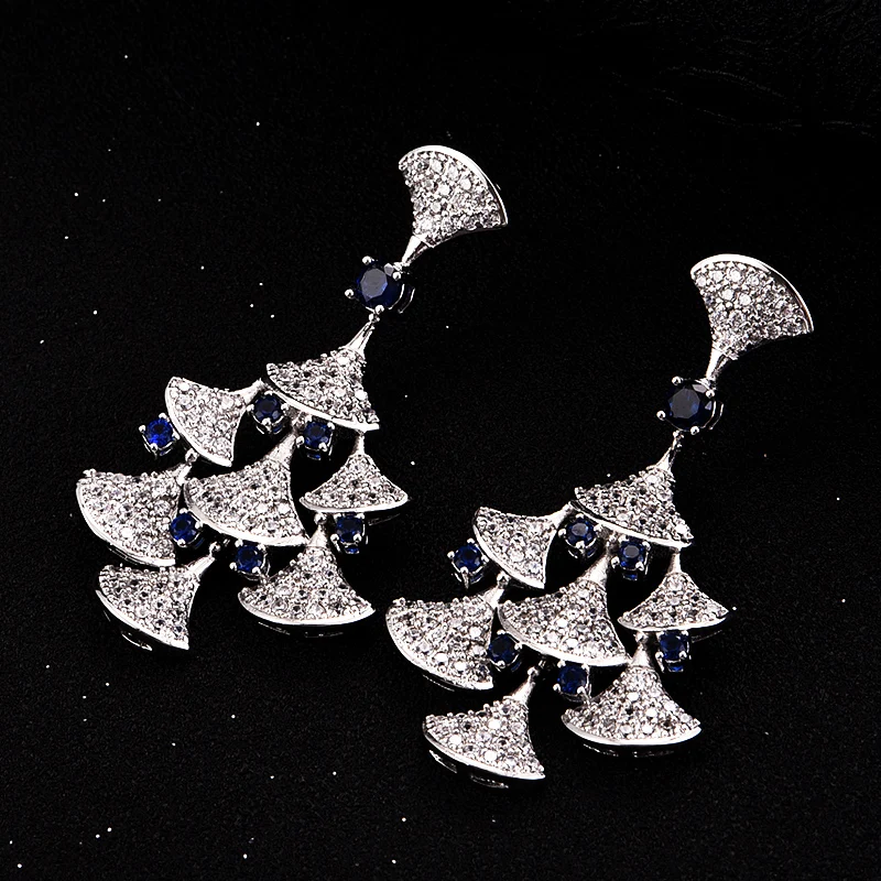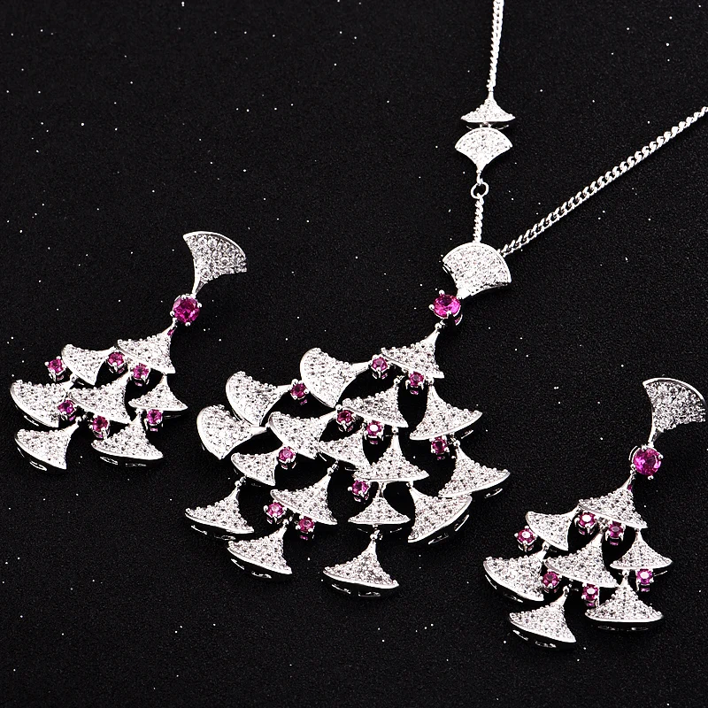 Charm ааа класса люкс из белого золота Цвет длинная звеньевая цепь ожерелье разноцветные австрийские кристаллы серьги ювелирные наборы для невест, для женщин, N-130