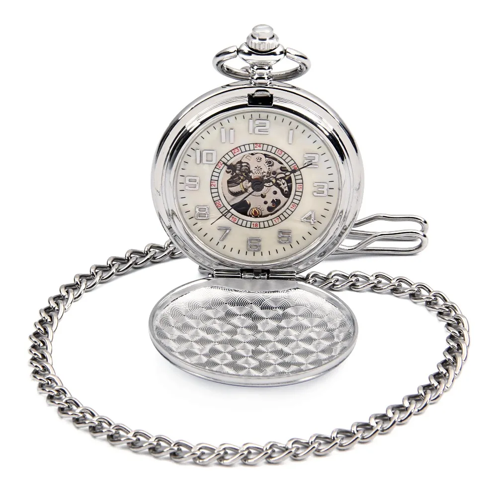 Модные Серебристые часы в стиле стимпанк, Механические карманные часы для мужчин и женщин с цепочкой, Подарочные винтажные часы с подвеской в виде скелета