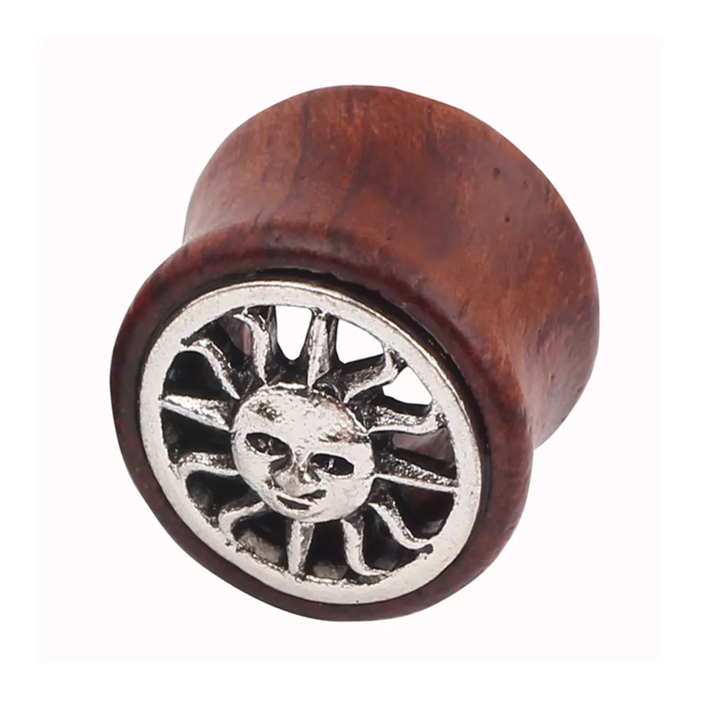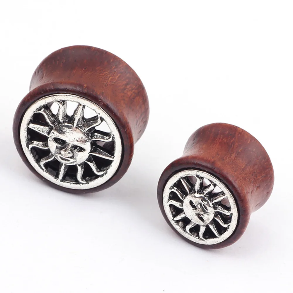 Солнечные двойные светящиеся Заглушки для ушей, пробки для туннелей, ювелирные изделия для пирсинга, деревянные пробки и туннели, 2 шт./лот P4016