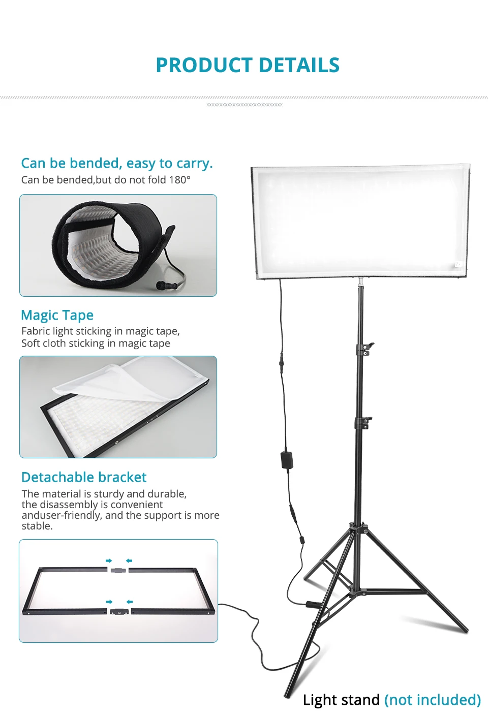Скручиваемый дизайн, он может быть свернут или раскатан легко, помогает создать эффект освещения 360 градусов.