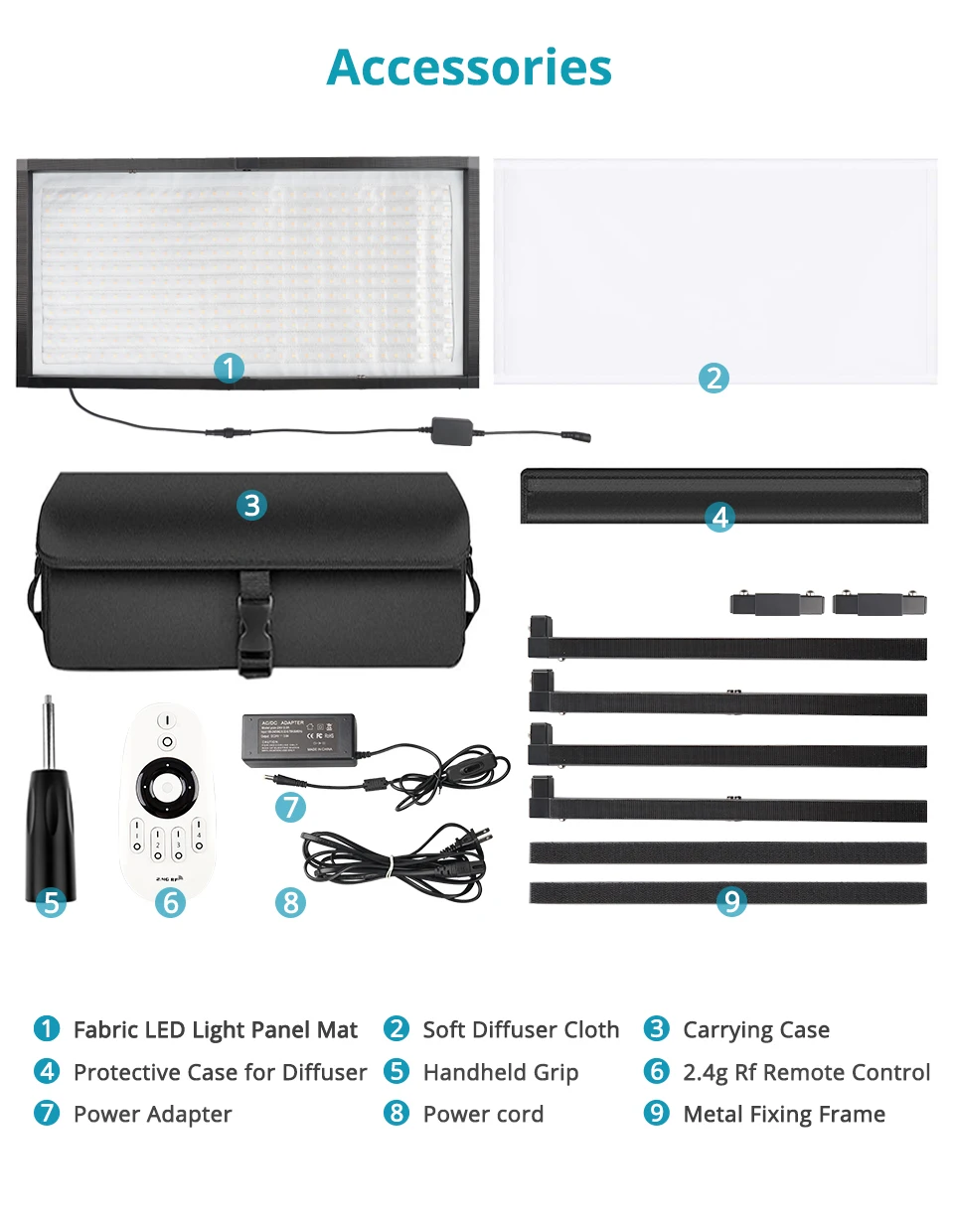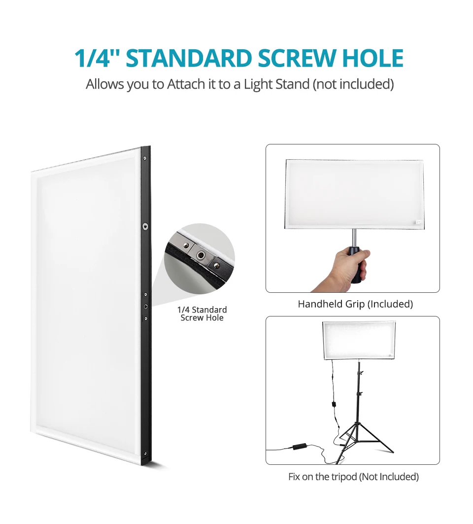 Travor новый дизайн FL-3060A, состоящий из 448 супер ярких бусин, 85 Вт высокой мощности, максимальная мощность до 8000лм, CRI95, 3200K ~ 5500K Цветовая температура. Его можно отрегулировать под любой угол для съемки. Оснащен стандартным винтом 1/4 "в нижней части, может быть легко прикреплен на подставке или ручке светильник. С пультом дистанционного управления 2,4G и радиусом действия 30 м. Вы можете легко регулировать яркость из любого места.