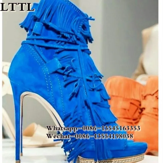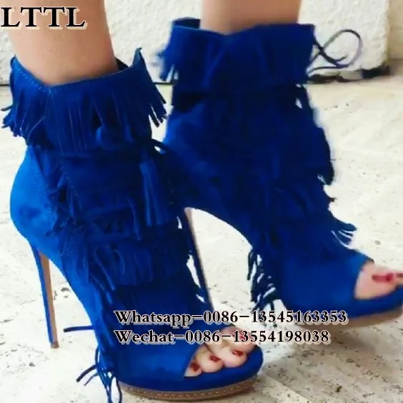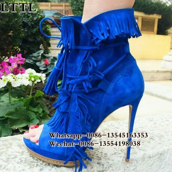 Отзывы о Женские замшевые ботинки с бахромой бежевые черные Синие ботильоны на шнуровке
