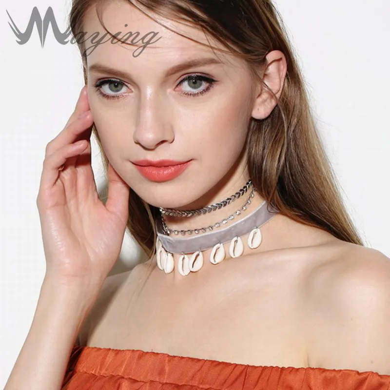 Chic Party Seashell изделия Multi Layered shell кулон колье ожерелье бархат кристалл кисточкой - купить
