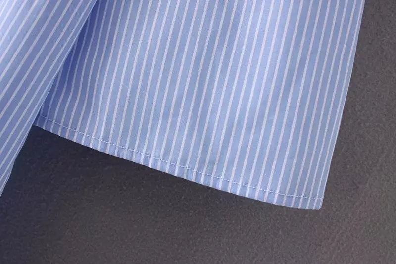 DENISKA Women Sweet Flower Embroidery Striped Shirt Three Quarter Sleeve With Tie Blouse Office Wear Ladies Brand Tops