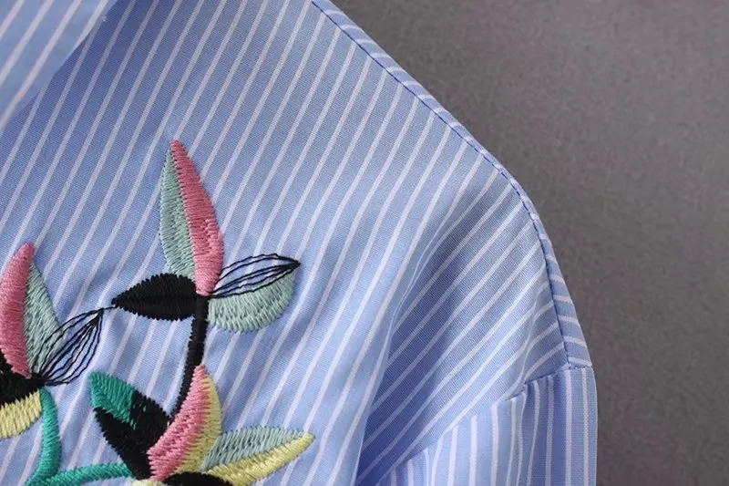 Отзывы о DENISKA Women Sweet Flower Embroidery Striped Shirt Three Quarter Sleeve With Tie Blouse Office Wear Ladies Brand Tops