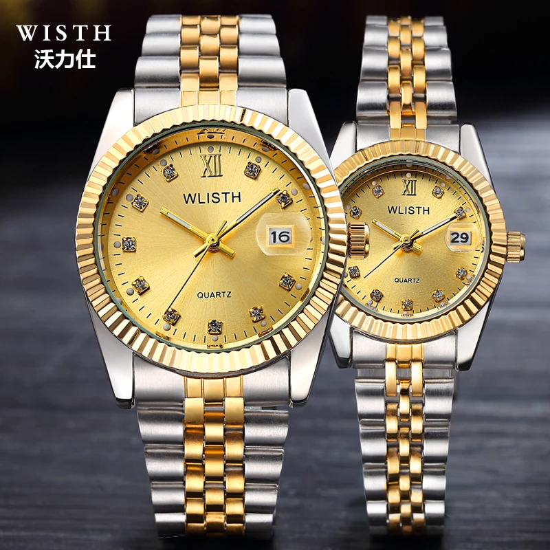 Отзывы о Часы наручные WLISTH мужские/женские кварцевые брендовые золотистые для пар