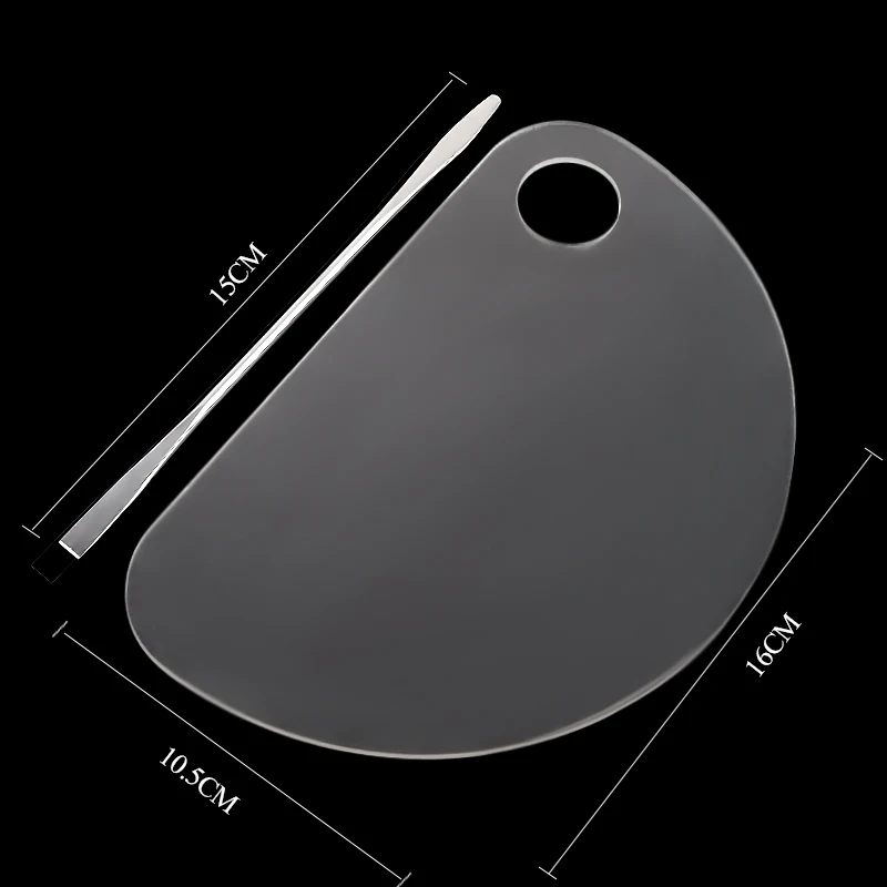 Новинка 100% года; розничная продажа Вес: 52G/комплект Материал: Акриловая Палитра/Нержавеющая сталь стержень Форма: Луна Форма Размеры:Палетка: см 16 см * 10,5 см стержень: см 15 см для длины Посылка содержание: 1 шт. палитра + 1 шт. стержень Внимание: это прозрачная акриловая палитра для макияжа, она высшего качества и толщины, чем обычно. Особенности: Прозрачные акриловые материалы высшего качества Гладкая текстура, более высокое качество и простота переноски Подходят как для салона, так и для личного домашнего использования