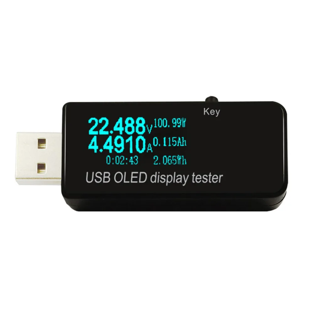 Этот USB-тестер OLED может контролировать напряжение, ток, емкость, электрическое количество, мощность, сопротивление нагрузки, D +/ D-напряжение, время зарядки и другие данные USB, И поддерживает Qualcomm QC3.0 Совместимость QC2.0, BC1.2, Apple 2.4A и другие протоколы быстрой зарядки.