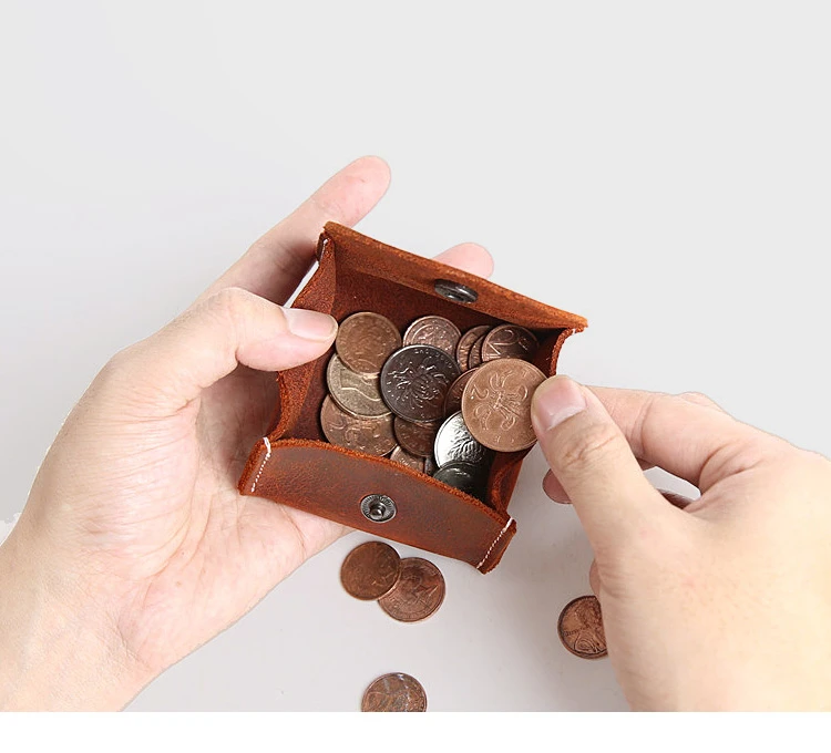 Vintage Crazy Horse Leather Small Coin Purse Storage Pocket