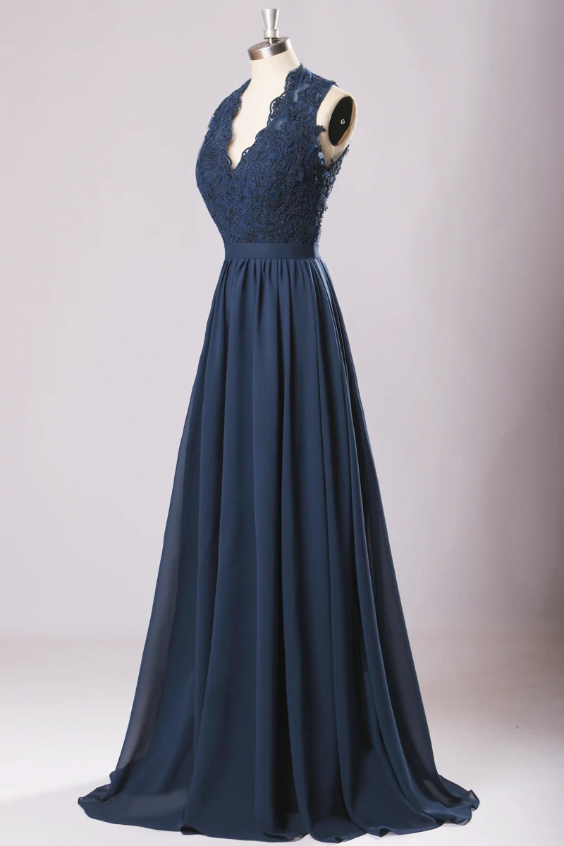 Новые длинные платья подружки невесты 2017 темно-синий плюс размер шифоновое - купить