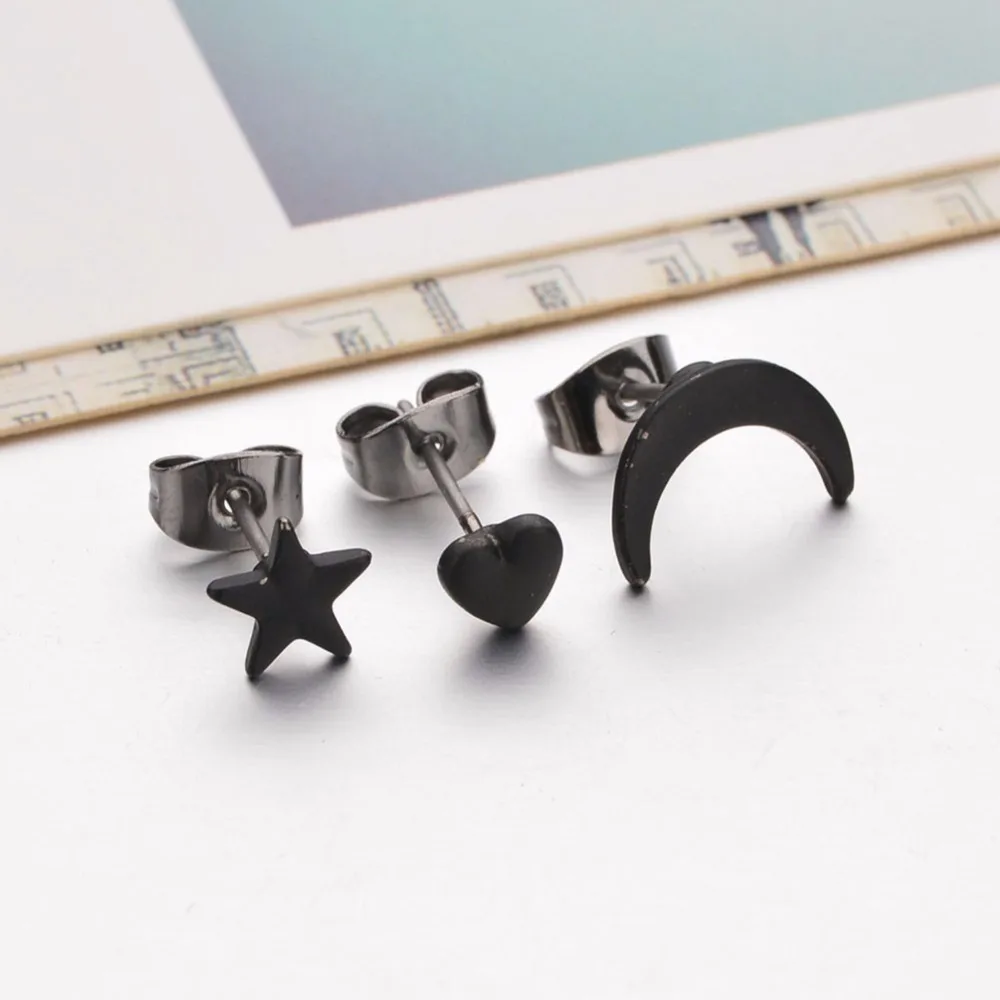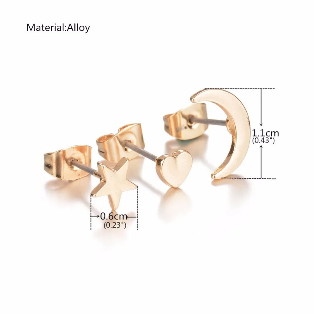 Купить Женские серьги-гвоздики 3 шт./компл. украшения в форме Луны звезды сердца серьги