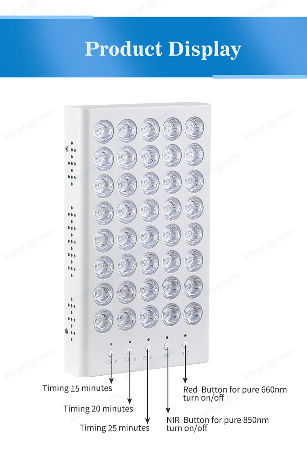 Эти светодиодный красный терапии светильник панели идеально подходят для всего тела кожи и ткани терапии, которые сделаны на 5 Вт высокой мощности Мощность светодиодный чипы, 60 или 90 градусов линзы с высоким проникать. Также эти панели с чистым красным 630нм, 660нм, чистым ИК 810нм, 830нм, 850нм и популярным дизайном-это Red mix N.IR, клиенты, которые могут выбрать тот, который вам нужен. Этот светильник s с таймером на светильник, красный светильник, таймер и дизайн таймера ближнего инфракрасного диапазона, легко установить таймер только на красный светильник или только на ближний инфракрасный светильник; также можно установить красный светильник и ближний инфракрасный светильник, это лучший и самый популярный. 300 Вт красный и NIR характеристики: -Количество СВЕТОДИОДНЫЙ: 60 шт. на 5 Вт -Длина волны: Красный 660нм и ИК 850нм; Чистый 660нм или 850нм -Способ работы: 2 включения/выключения -Напряжение: AC85 ~ 265 в -Частота: 50 / 60 Гц -Вес: 3,0 КГ -Размеры: 400x170x60мм -Применение: для всего тела 200 Вт красный и NIR характеристики: -Количество СВЕТОДИОДНЫЙ: 40 шт. на 5 Вт -Длина волны: Красный 660нм и ИК 850нм -Способ работы: таймер ВКЛ/ВЫКЛ -Напряжение: AC85 ~ 265 в -Частота: 50 / 60 Гц -Вес: 1,6 кг -Размеры: 240х140х30мм -Применение: для всего тела 480 Вт красный и NIR характеристики: -Количество СВЕТОДИОДНЫЙ: 96 шт. на 5 Вт -Длина волны: Красный 630нм, 660нм и ИК 810нм, 830нм, 850нм; -Способ работы: Управление таймером (синхронизация для красного или NIR) -Напряжение: AC85 ~ 265 в -Частота: 50 / 60 Гц -Вес: 4,5 кг -Размеры: 480x210x60мм -Применение: для всего тела 900 Вт красный и NIR характеристики: -Количество СВЕТОДИОДНЫЙ: 180 шт. на 5 Вт -Длина волны: Красный 630нм, 660нм и ИК 810нм, 830нм, 850нм; -Способ работы: Управление таймером (синхронизация для красного или NIR) -Напряжение: AC85 ~ 265 в -Частота: 50 / 60 Гц -Вес: 8,0 кг -Размеры: 910x210x60мм -Применение: для всего тела 1485 Вт красный и NIR характеристики: -Количество СВЕТОДИОДНЫЙ: 297 шт на 5 Вт -Длина волны: Красный 630нм, 660нм и ИК 810нм, 830нм, 850нм; -Способ работы: Управление таймером (синхронизация для красного или NIR) -Напряжение: AC85 ~ 265 в -Частота: 50 / 60 Гц -Вес: 12,0 кг -Размеры: 910x280x60мм -Применение: для всего тела Примечание: Новая панель 200 Вт Использует драйвер адаптера 24 В и адаптер с сертификатом UL, очень безопасен в использовании; Цель дизайна-помочь пользователям, которые любят IPAD, пользователи, которые могут взять его в любом месте и сделать лечение в любом месте, где они чувствуют сходство.