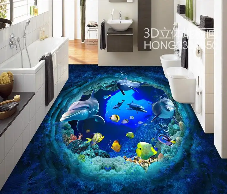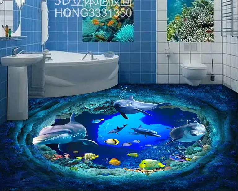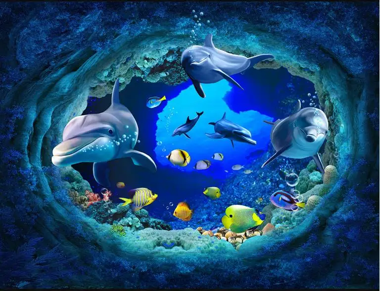 Купить Роскошные самоклеящиеся обои для пола настенные бумажные 3D-обои в виде дельфина