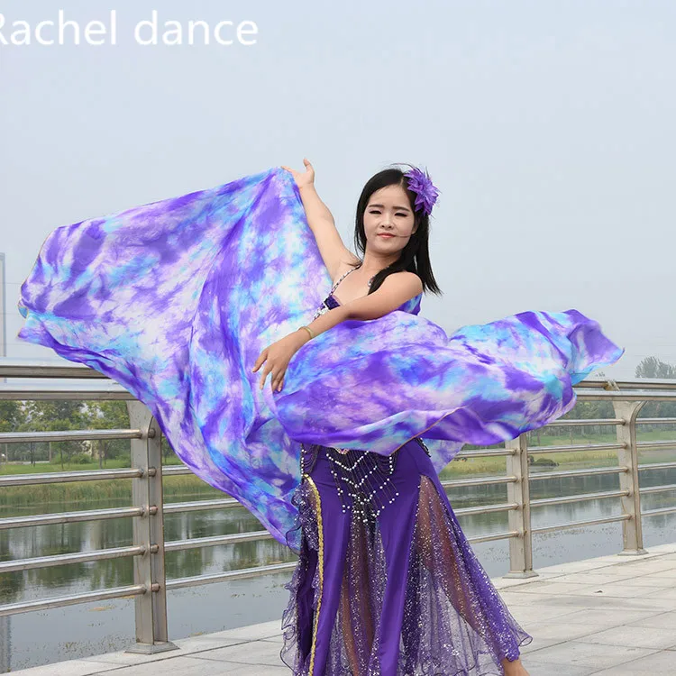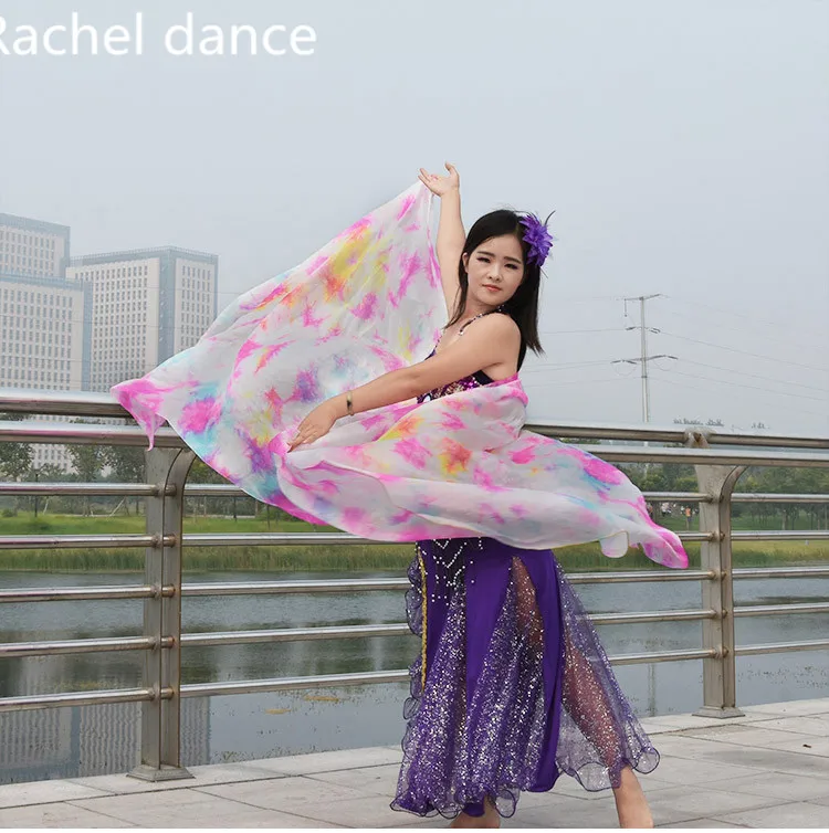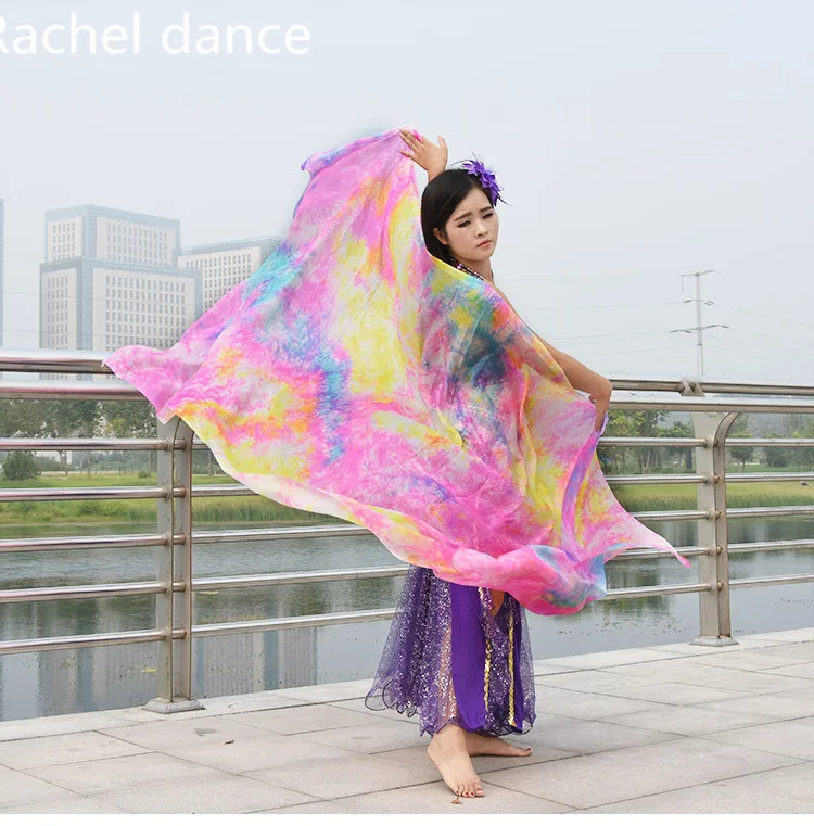 Дизайн 100% натуральный шелк для танца живота, красивая вуаль для танца живота, градиентная цветная имитация шелка, мягкая шаль, платок-накидка, шаль
