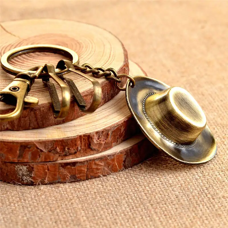 Отзывы о 1pc Creative Vintage Bronze Cowboy Hat Buckle Keyring Keychain Punk Fashion Key Chain Ring Accessories Jewelry Украшения и