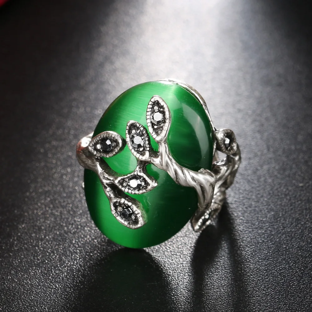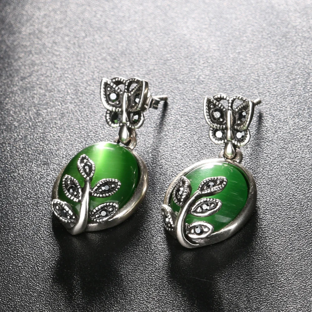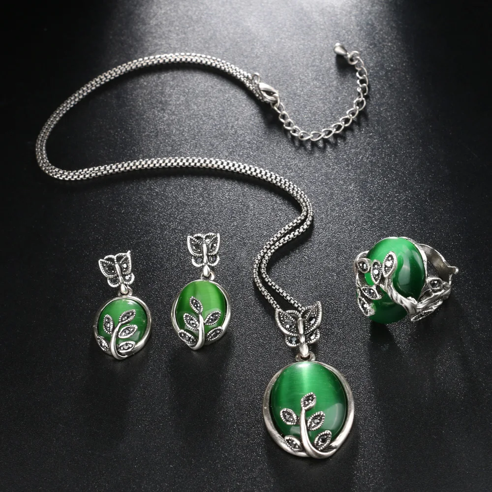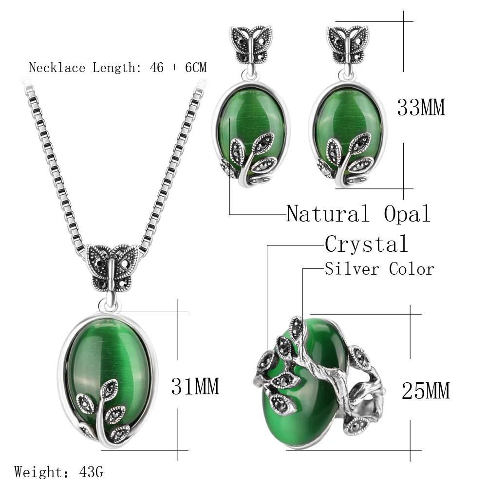 Кольца и серьги женские Kinel натуральный зеленый опал тибетское серебро - купить
