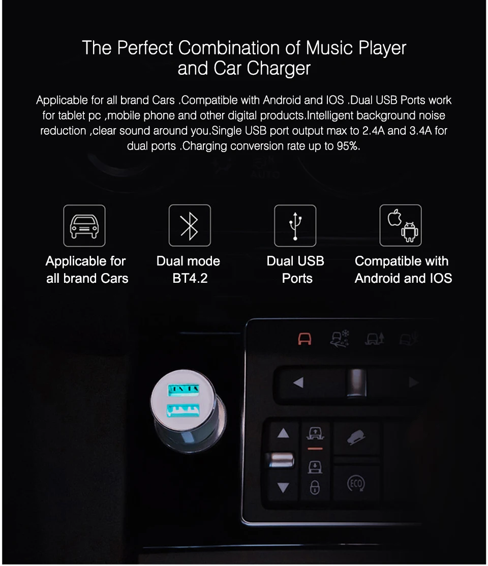 Отзывы о Xiaomi ROIDMI 3 S Dual USB Bluetooth автомобиля Зарядное устройство 5 В 3.4A FM xiaomi приложение для