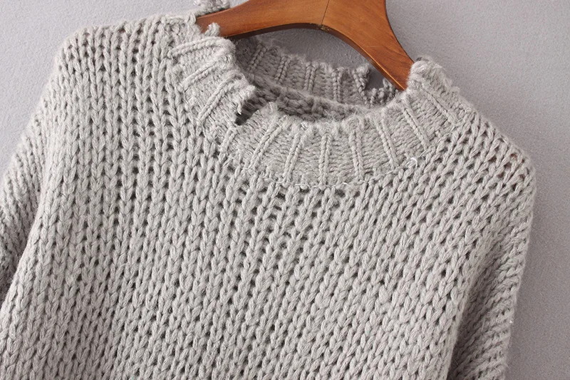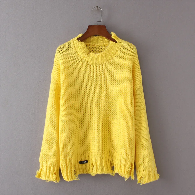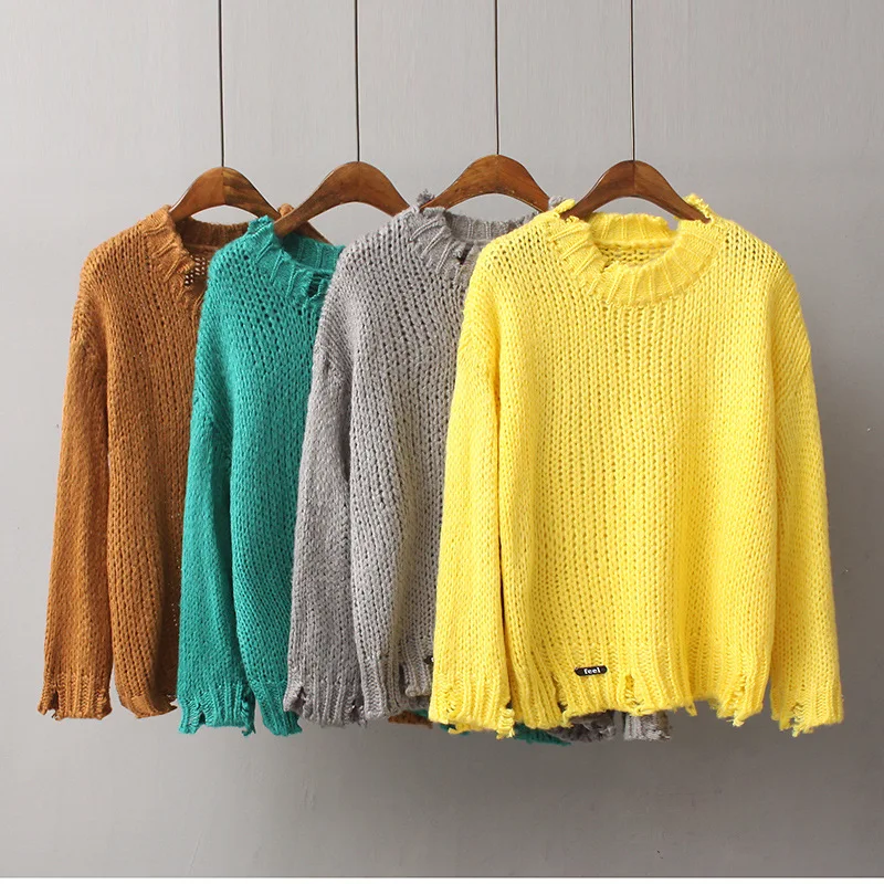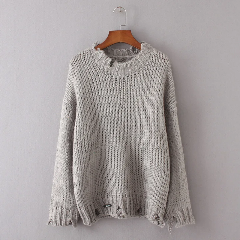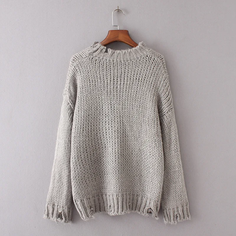 Дениска с длинным рукавом Твердые Для женщин Свитеры для женщин и Пуловеры для женщин 2017 осень-зима отверстия теплый пуловер свободные трикотажные свитера