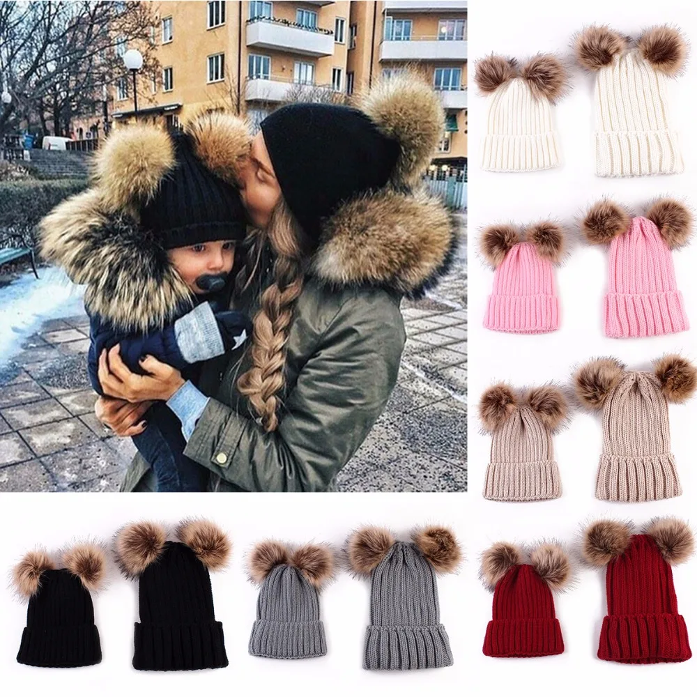 Купить Вязаная шапка Puseky для мамы и ребенка теплые шапки всей семьи новорожденных Bebek