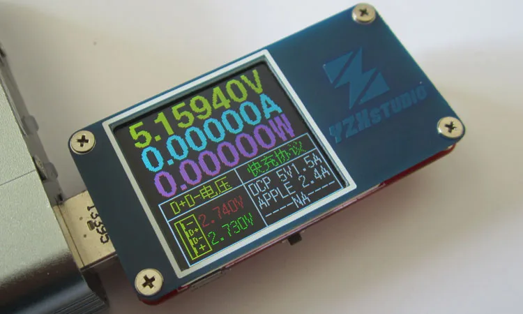 Особенности: Профессиональный USB зарядка детектор Напряжение: 3-24 В • Сила тока: 0-5A Интерфейс: USB вход папа * 1 MicroUSB * 1, Type-C * 2 MicroUSB может испытать Micro USB кабель для передачи данных Тип-c в дополнение к тестированию линии передачи данных, но также тестирует PD, сопротивление линии передачи данных Кнопка * 1 Содержание дисплея: Первый экран: текущее напряжение, ток, мощность, совокупная емкость Ah, емкость Wh, правая сторона небольшой температуры платы, стрелка направления тока, группа емкости. Длительное нажатие для переключения емкости, длительное нажатие для очистки текущей группы емкости. ![]() Второй экран: текущее напряжение, ток, мощность, эквивалентное сопротивление нагрузки, время записи. ![]() Третий экран: 10 раз-100 раз среднее напряжение и сила тока, D + D-напряжение, быстрый режим распознавания заряда. Нажмите, чтобы переключить количество отображаемых цифр и среднее число. ![]() Четвёртый экран: Функция измерения внутреннего сопротивления кабеля, длительное нажатие без нагрузки для переключения тестового режима, с длительным нажатием записи справочных данных. ![]() Пятый экран: напряжение и ток D + D Кривая функция рисования, Новый Автоматический диапазон прошивки, самая быстрая кривая 100SPS, 60fps. С чьей-то поддержкой является «осциллограф», «пульсационный стол».Так как только 100SPS не достаточно, чтобы отображать высокочастотную рябь, я только рекламирую функцию кривой рисования. Автоматическая ассортимент самой низкой 0,01 V или 0.01A сетку. ![]() Шестое окно: показывает только текущее напряжение, ток, мощность, этот интерфейс долго нажимает, чтобы повернуть направление дисплея. ![]() Системные настройки: Нажмите и удерживайте кнопку, а затем подключите, короткое нажатие для переключения параметров, длительное нажатие, чтобы войти и подтвердить. ![]()