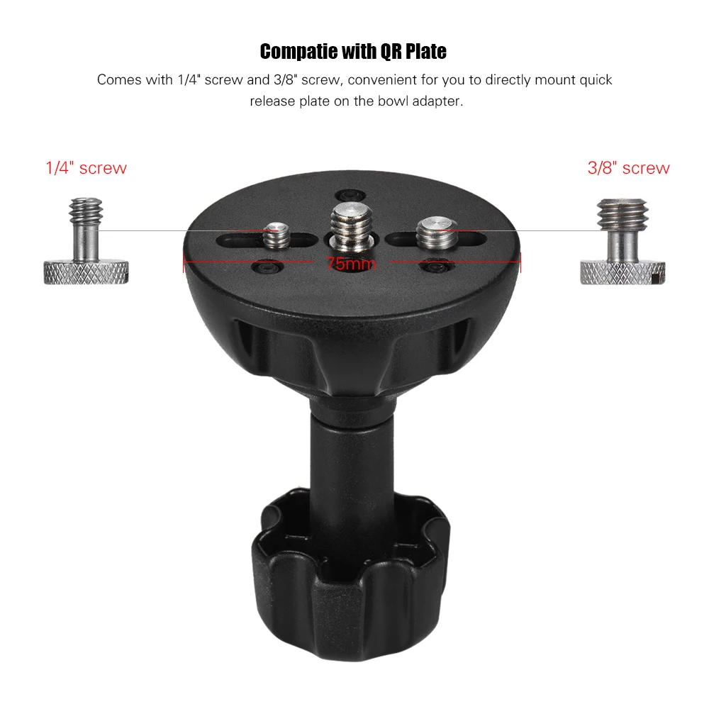 Поставляется с винтом 1/4 "и винтом 3/8", удобно для прямого крепления быстроразъемной пластины на адаптере чаши.