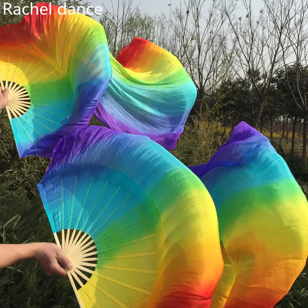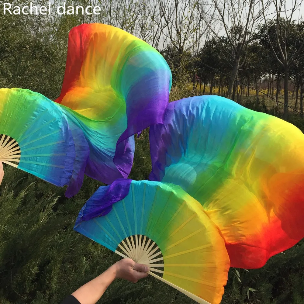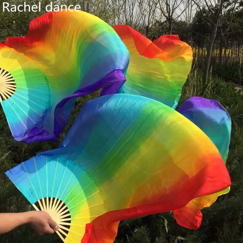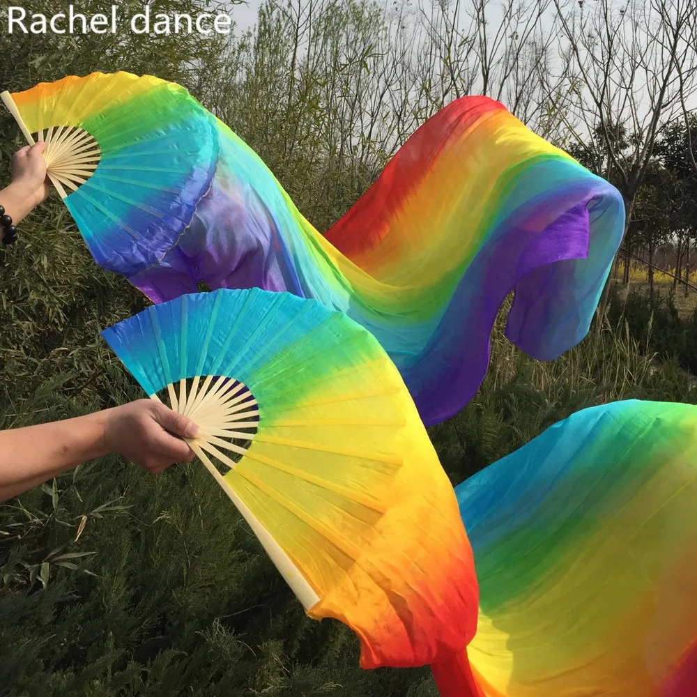 Оптовая продажа, окрашенная 100% натуральный шелк, Веерная Фата для танца живота, сексуальная, длина 180 см, Шелковый веер для танцевального шоу на сцене, пара