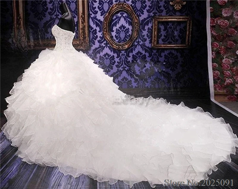Отзывы о New White Plus Size Wedding Dresses 2019 Sweetheart Crystal Beaded Ball Gown Ruffles Bridal Vestido de noiva Свадьбы и торжества