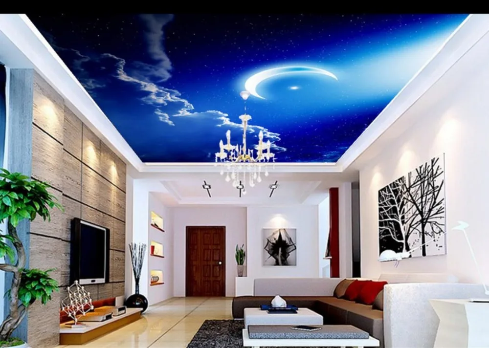 Отзывы о Небо облака Луна настенные фрески для гостиной потолочные обои нетканые 3D