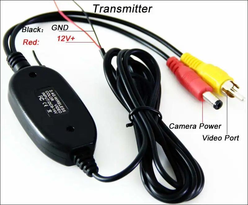 Беспроводной передатчик:1) кабель Длина: 1,6 м2) 2,4G Беспроводная, цветное видео3) Расстояние передачи: 50 м4) Вход: 12 В постоянного тока5) Рабочая температура: -10-60oC