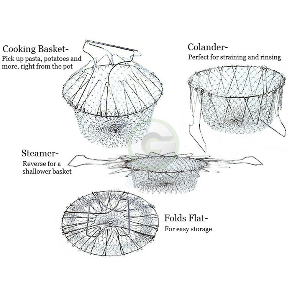 Складная промывка паром деформации Fry французская корзина шеф-повара Волшебная Корзина Сетчатый кухонный инструмент для приготовления пищи