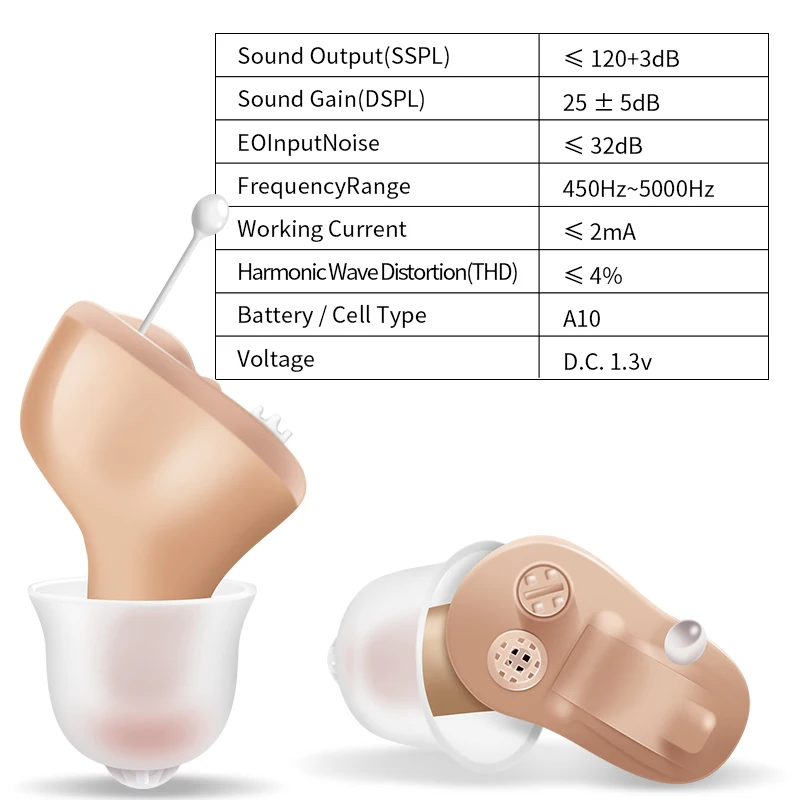 Звуковой выход (SSPL) ≤ 120 + 3 дБУсиление звука (DSPL) 25 ± 5 дБВходной шум E0 ≤ 32 дБДиапазон частот 450 Гц ~ 5000 ГцРабочий ток ≤ 2 мАГармонические волновые искажения (THD) ≤ 4%Батарея/тип ячейки A10НАПРЯЖЕНИЕ D.C.1.3VВ связи с тем, что почтовое отделение имеет ограничения на транспортную безопасность, может быть отправлен только один аккумулятор