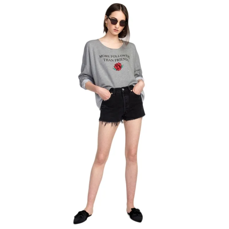 Купить Сладкий цветок с принтом букв женские футболки осень серый o-образным вырезом