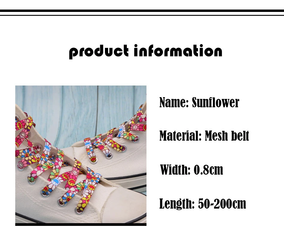 Weiou женские детские спортивные парусиновые кроссовки шнурки 8 мм плоские печатные красочные подсолнухи узор полиэстер шнурки для шнурков Прямая поставка