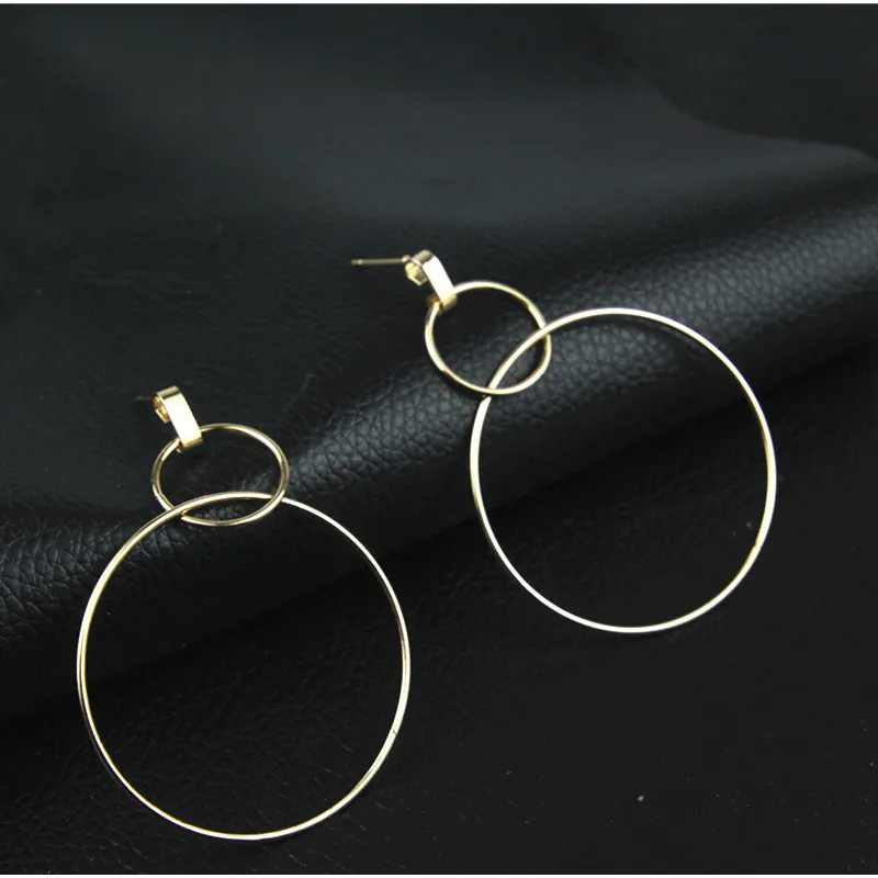 Купить New double large round drop earring fashion jewelry Statement Long Earrings women gift e0214 | Dangle