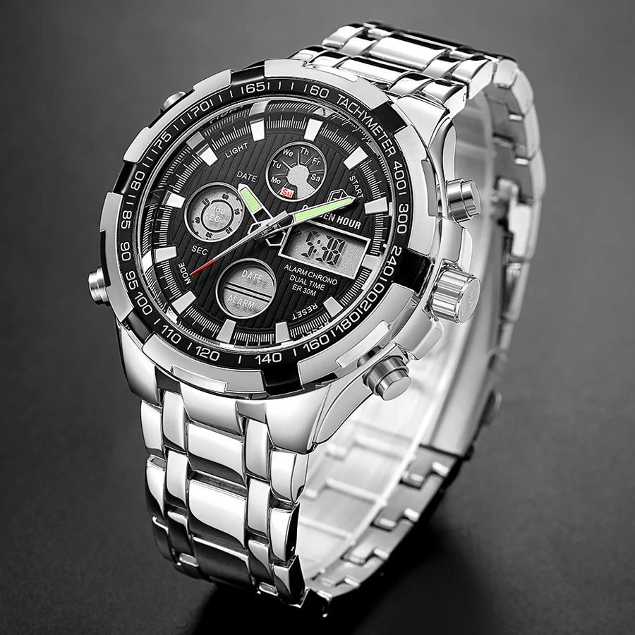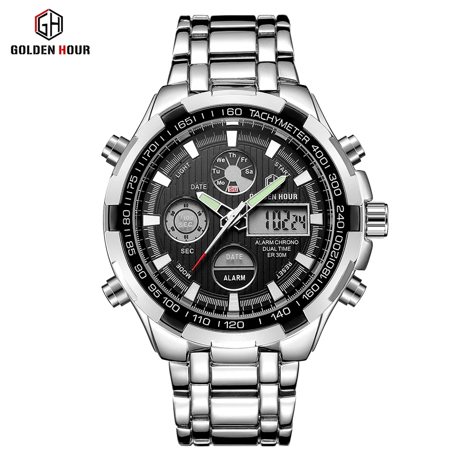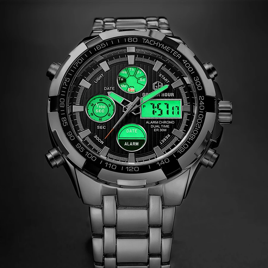 Купить GOLDENHOUR Luxury Brand Водонепроницаемые военные спортивные часы Мужские цифровые