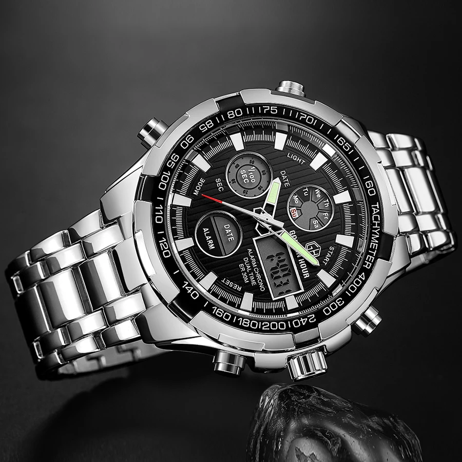 GOLDENHOUR Роскошные брендовые водонепроницаемые военные спортивные часы мужские кварцевые аналоговые часы из серебристой стали мужские часы Relogios Masculinos