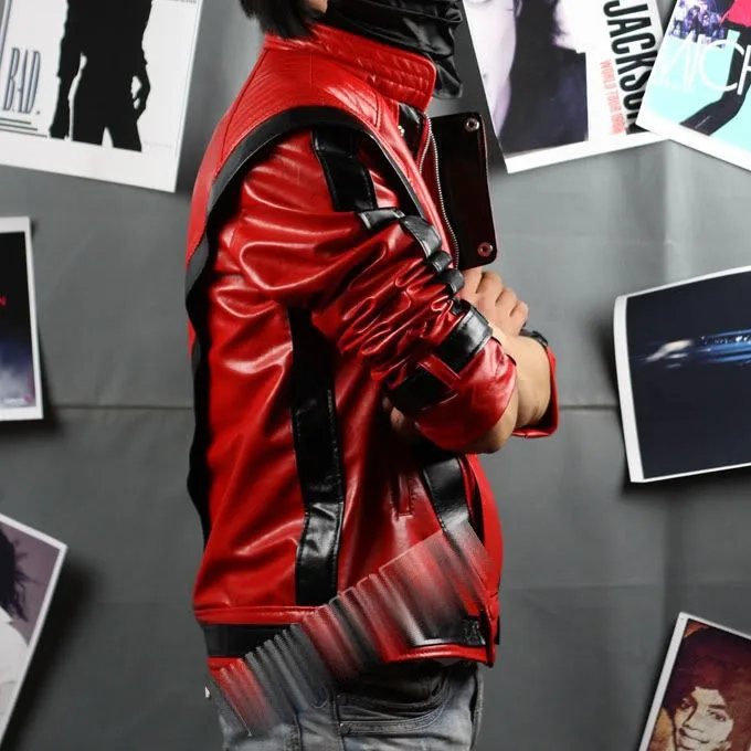 Пальто из кожи в стиле MJ Cosplay с костюмом Майкла Джексона красная куртка "Thriller" и бесплатная перчатка "Billie Jean" - купить