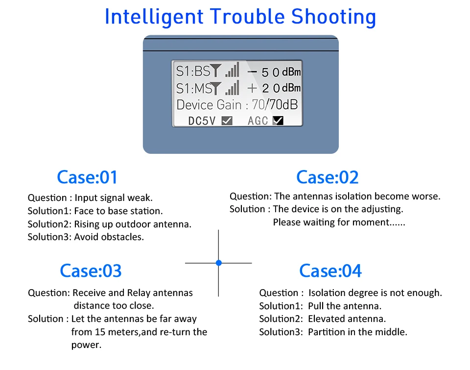 Примечание: Пожалуйста, убедитесь, что место, где вы собираетесь установить, с CDMA 850MHz,PCS 1900MHz сигнала. И убедитесь, что вы можете получить по крайней мере 2 бар 2G 3G сигнал на открытом воздухе перед покупкой, в противном случае этот продукт не может вам помочь. Для улучшения сигнала в помещении необходим хороший внешний сигнал.