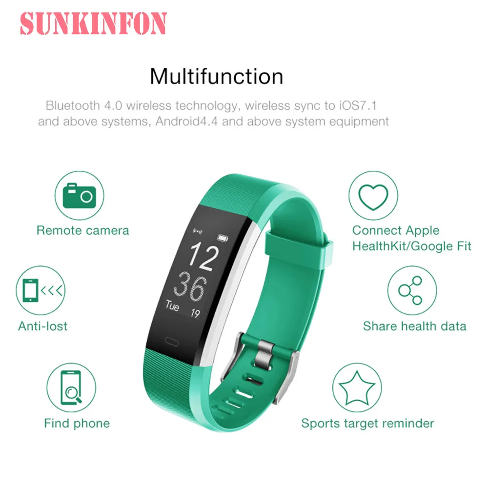 2017 новое поступление SUNKINFON ID116 HR Plus смарт-Браслет фитнес и трекер сна шагомер