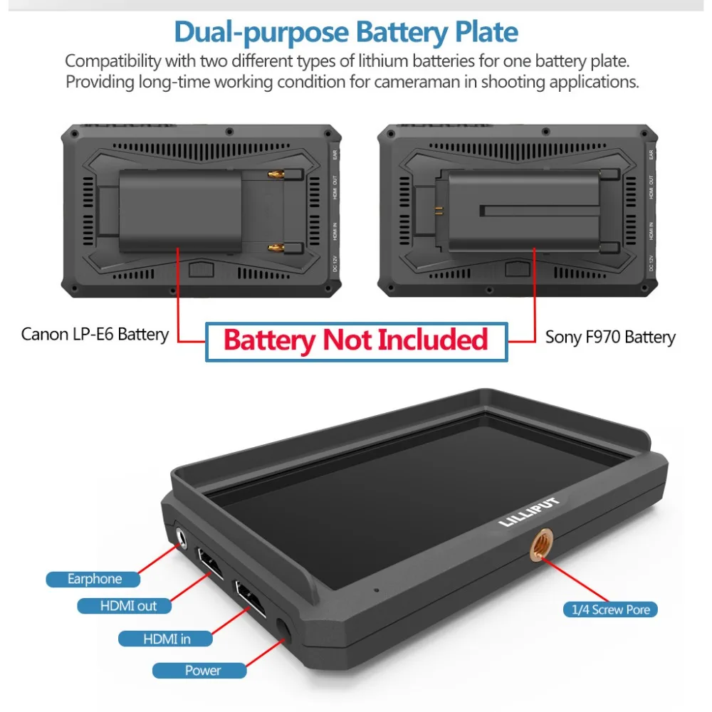 Lilliput A5 5 1920x1200 IPS HD LCD Peaking Camera Video Monitor Display 4K HDMI Input Loop-out for Canon Nikon DSLR BMPCC 5DIV on - Монитор видео с поддержкой и входом выходом для камер - купить