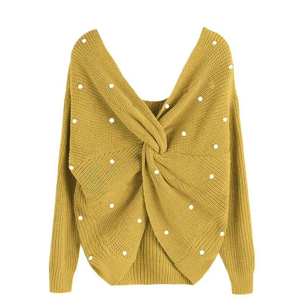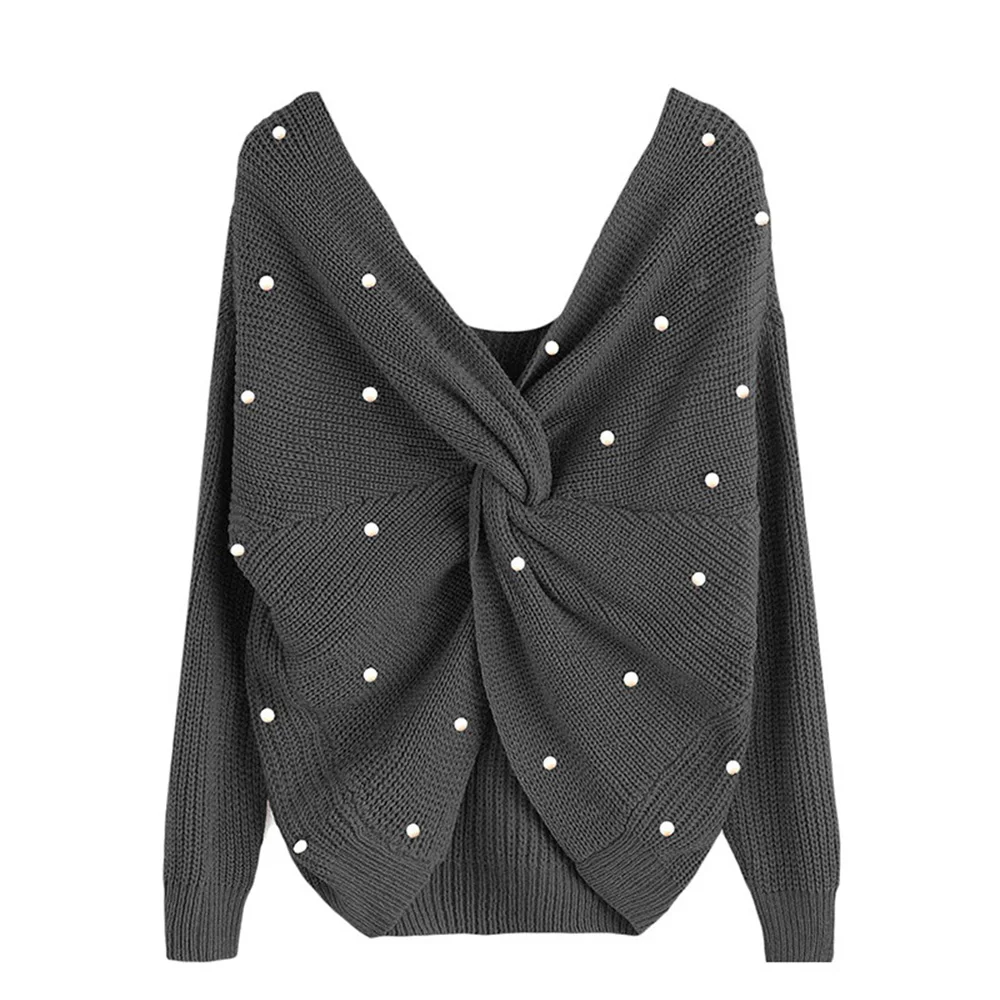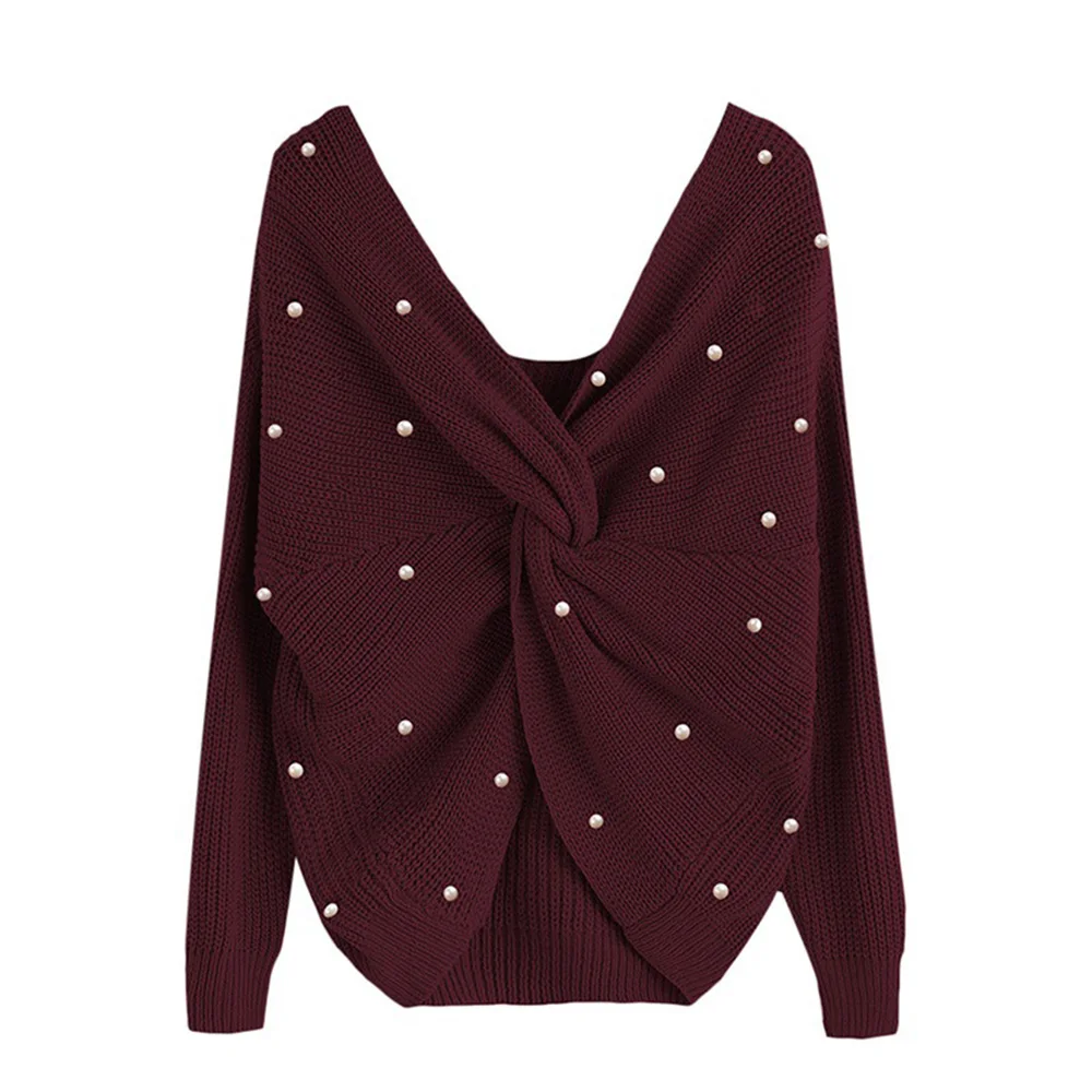 Купить Pearl Beading V Neck Twist Sweater Sweet Burgundy Women Pullovers Knit Jumper Long Sleeve Casual Solid pull femme | Женская одежда