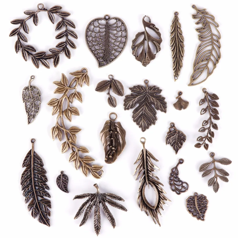 Купить 20 шт./компл. Винтаж смешанный античная бронза кулоны в виде листьев дерева тема