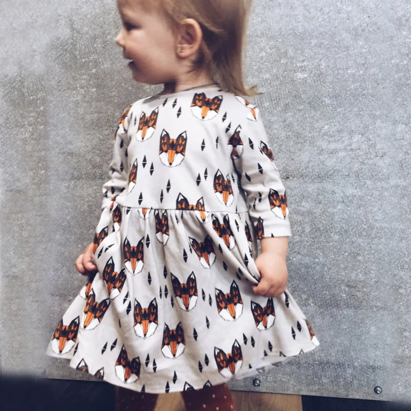 Платье для девочек; Весеннее детское платье принцессы с длинными рукавами и принтом лисы